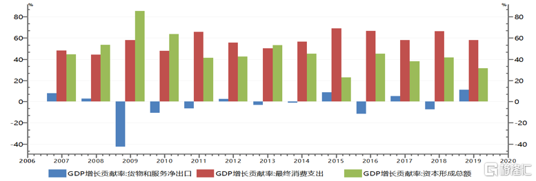 因此,在三驾马车中,内需两项——消费和投资对经济增长的拉动互相抵消,整体经济增长大致等于外需的拉动。