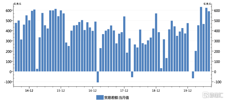 | 图2 今年贸易顺差规模很大。数据来源:WIND;中航信托