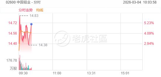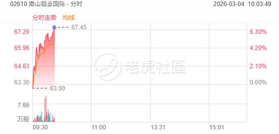 3月4日,铝业股走强,南山铝业国际涨超5%,中国铝业涨近5%,中国宏桥涨超3%