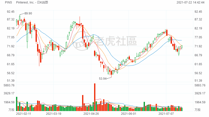 图片社交平台Pinterest将于7月29日(下周四)美股盘后公布2021年第二季度财报。自2月中旬创下历史新高以来Pinterest股价已回落约20%,今年以来则上涨近10%,逊于标普500指数16%的涨幅。Pinterest第二季度业绩喜忧参半,该公司的广告定价势头和广告客户群扩张与其美国月度活跃用户(MAU)增长的放缓形成鲜明对比。