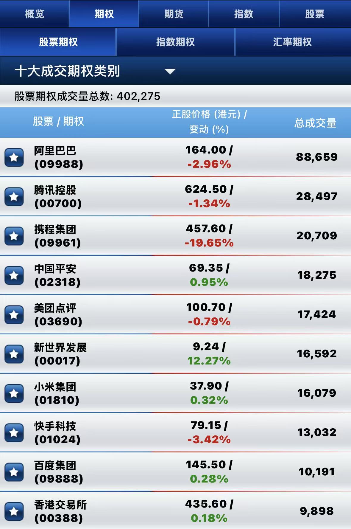 港股期权半日成交超40万张。其中,阿里巴巴-W成交量居前,期权成交超8.8万张;腾讯控股名列次席,期权成交超2.8万张; 携程集团-S位居第三,期权成交超2万张。