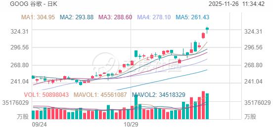 周二,英伟达早盘股价一度重挫逾7%,后跌幅收窄,收跌2.6%,收创两个多月新低,而谷歌股价则进一步走高,早盘曾涨超3%,尽管此后回吐部分涨幅,仍收涨1.6%,连续第三个交易日创收盘历史新高,总市值逼近4万亿美元。