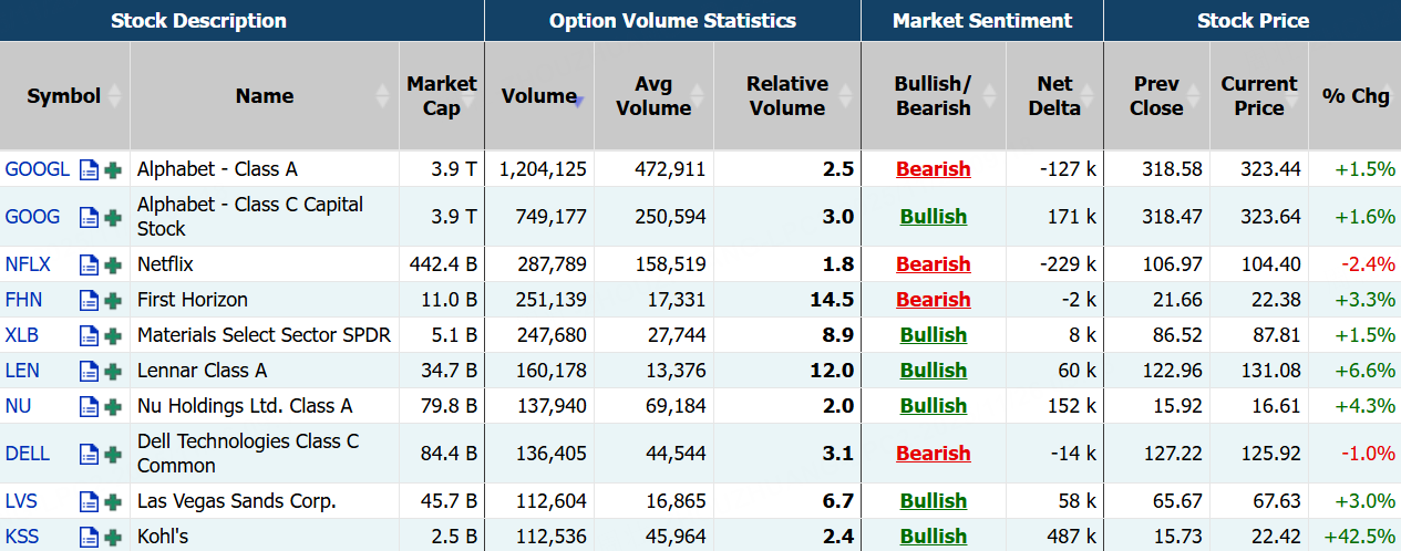 柯尔百货隔夜股价暴涨逾42%,当日期权成交11.25万张,较90日均量放大逾2倍,看涨期权占比升至57.9%。消息面上,该公司公布了超预期的第三季度财报,同时连续第二个季度上调全年业绩指引,这一信号表明,新任首席执行官Michael Bender正在帮助这家陷入困境的零售商重回正轨。
