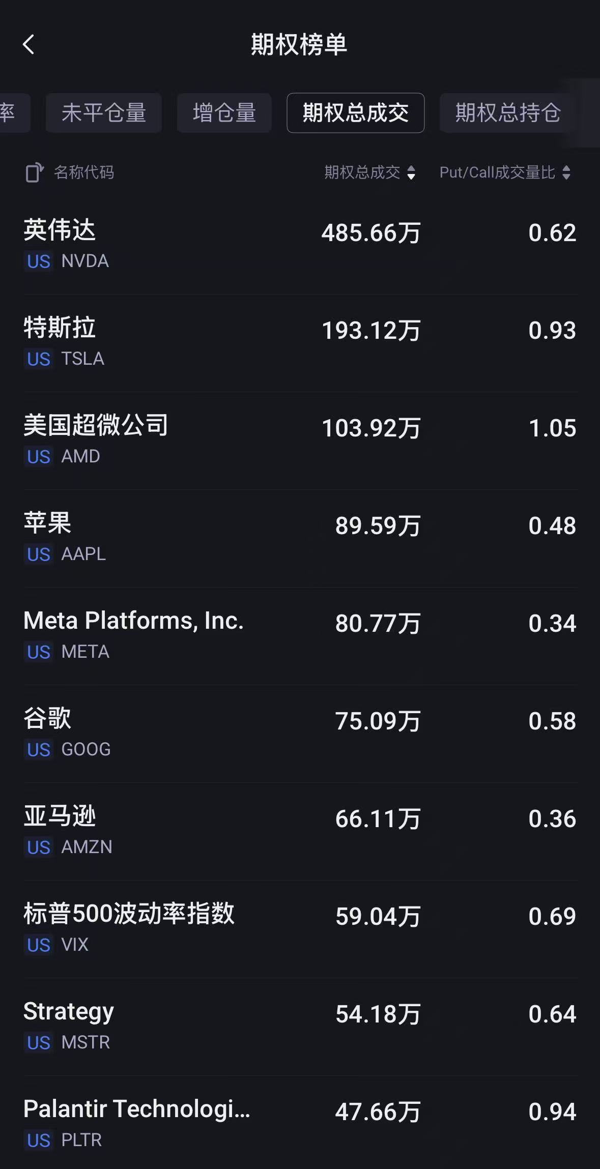 周二,期权市场总成交量5592.09万张合约,低于90日均量;英伟达成交485.66万张,环比前一交易日增加逾65%;谷歌成交75.09万张,看涨期权占比升至63.5%>>