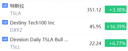 11月22日,“马斯克概念股”盘中拉升,特斯拉涨超3%,DXYZ涨超16%,TSLL涨近7%。