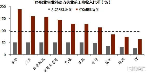 如此大规模的放水,必然会使得相当一部分资金流入股市,让资本市场受益。例如,美国政府部门也投入大量财力来补贴美国民众,如推出的CARES法案,对失业人口的补贴600美元/周,甚至比他们未失业前的收入还高。
