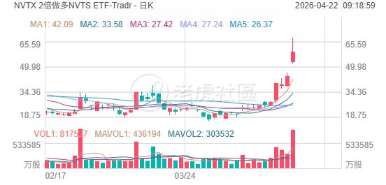2倍做多NVTS ETF-Tradr(NVTX)上涨34.48%。该产品两倍做多半导体公司 纳微半导体 ,因底层公司股价上涨,杠杆机制放大当日涨幅。