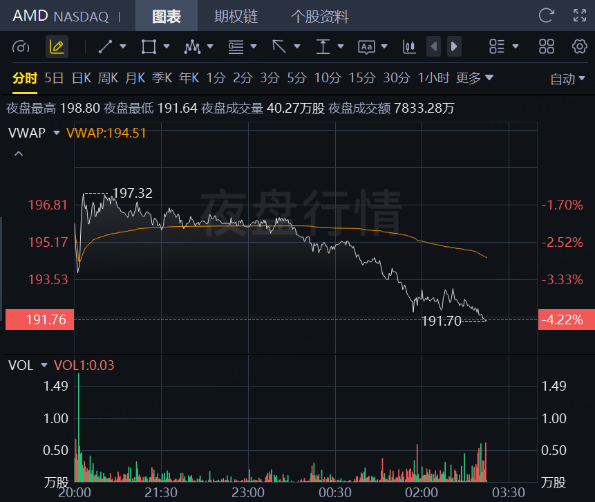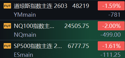 3月2日,美股三大股指期货跌幅扩大,纳指期货跌幅扩大至2%,标普500指数期货、道指期货跌约1.6%。明星科技股夜盘跌幅扩大,AMD、阿斯麦跌超4%,特斯拉、亚马逊、谷歌A、甲骨文、博通跌超3%,英伟达跌超2%。