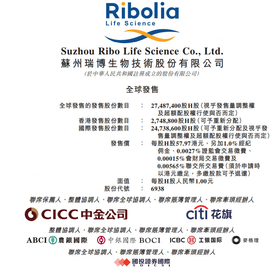 12月31日,瑞博生物-B于12月31日至1月6日招股,公司拟全球发售2748.74万股H股,其中,香港发售占10%,国际发售占90%,另有超额配股权15%。每股发售价57.97港元,每手200股,预计将于1月9日在联交所开始买卖。