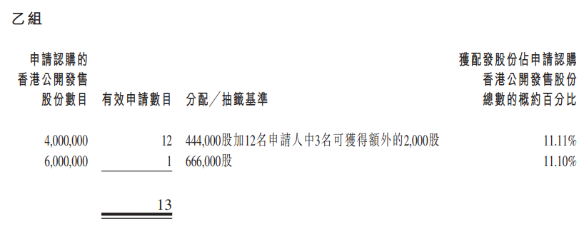乙组头为2000手,获配4000000股。