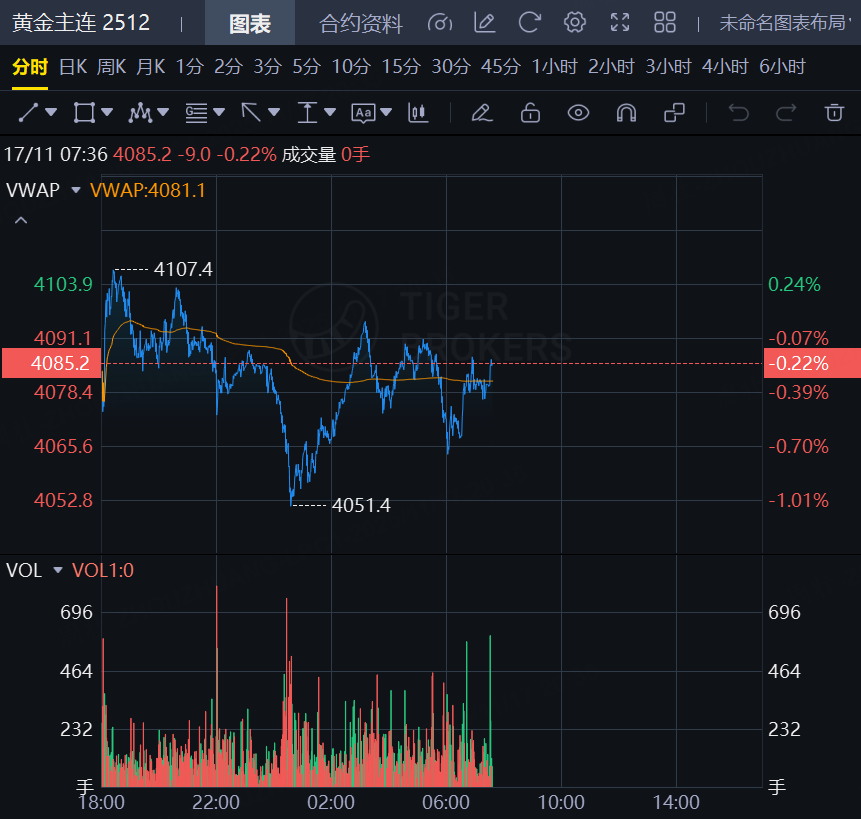 黄金期货小幅震荡,截止发稿,跌0.22%,报4085.2美元/盎司。