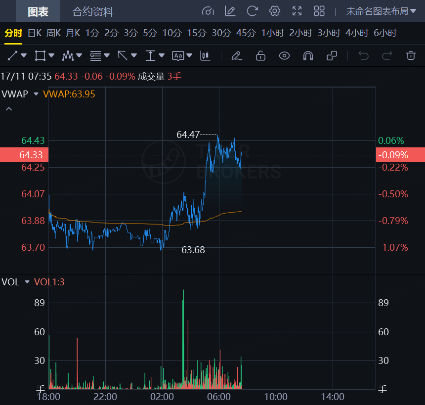 原油期货跌幅收窄,截止发稿,WTI原油跌0.12%,报60.7美元/桶;布伦特原油跌0.39%,报64.36美元/桶。