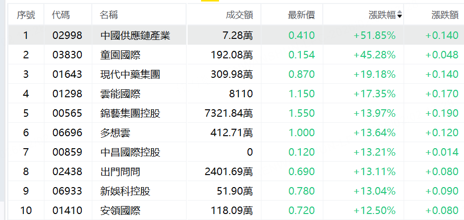 三、港股今日涨幅TOP10