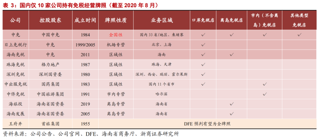 截止目前,市场中一共仅发布10张免税牌照,其中3张归属于中国中免,其他7张分别归属于格力地产、深圳国资委、国药集团、中国旅游集团、王府井和海南省国资委。
