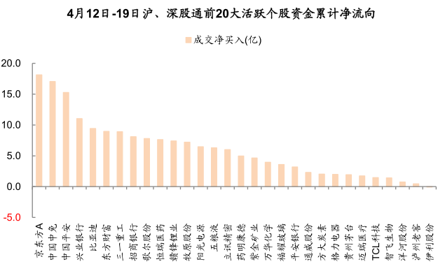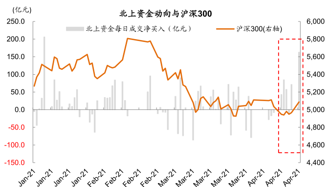 图表:4月12日以来北上资金再次出现净流入小高峰,4月19日净流入规模创年内次高