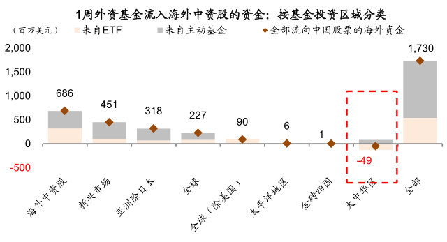 图表: 专注投资A股的海外基金周度净申购:主动基金/ETF
