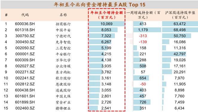 近期北向持股分析:重点增持科技硬件、免税、金融等行业龙头。