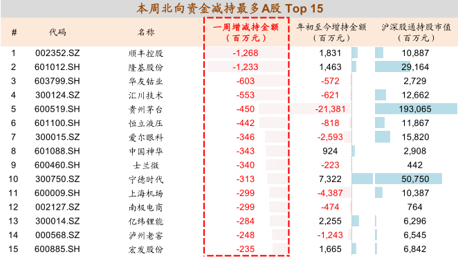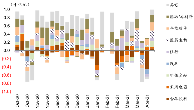 图表:4.12-4.16北上资金增持最多的是科技硬件和医药生物