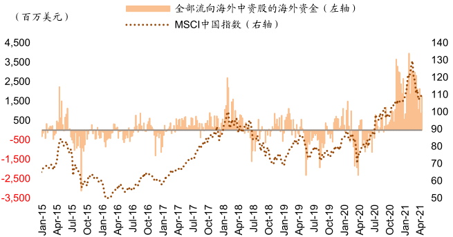 近期在A股市场表现相对平淡的背景下,北向资金从上周初(4月12日)开始出现较大规模且持续的资金净流入,尤其在4月19日净流入163亿元,为年初至今的次高值。我们通过EPFR数据测算跟踪的海外资金也连续5周净流入A股市场。投资者较为关心外资相关资金入场“抄底”的可能的原因和指示意义。我们对此分析如下: