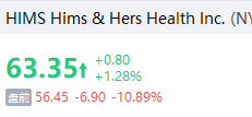 Hims & Hers Health跌超10%,Q2营收不及市场预期,Q3指引低于预期。