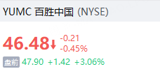百胜中国盘前涨超3%,经营利润同比增长14%至3.04亿美元。