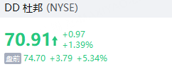 杜邦盘前拉升涨超5%,二季度营收、每股收益、三季度展望均超预期。