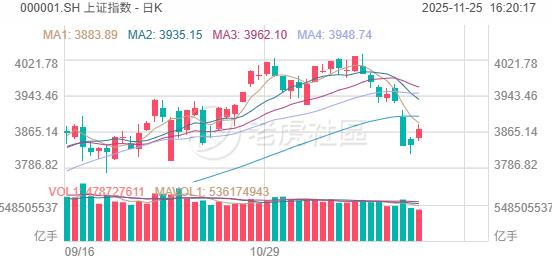11月25日,A股三大指数今日集体走高,截至收盘,沪指涨0.87%报3870点,深证成指涨1.53%,创业板指涨1.77%。全市场成交额1.83万亿元,较前一交易日增量858亿元,4300股上涨。