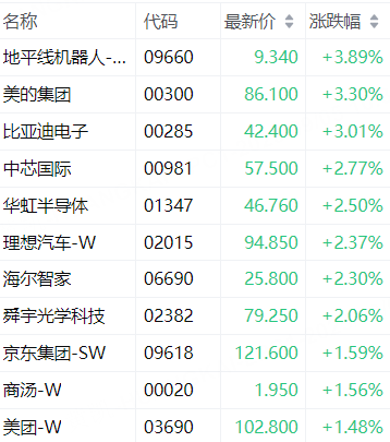 9月5日,恒指科技指数涨逾1%,科指成分股中,地平线机器人-W涨近4%,比亚迪电子涨超3%,中芯国际、理想汽车-W涨超2%。