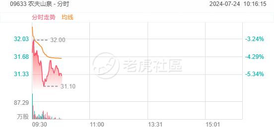 本周三(7月24日), 农夫山泉 小幅低开后一路下挫,一度跌超6%,截至发稿报31.4港元,跌幅5.14%,成交额超2亿港元。