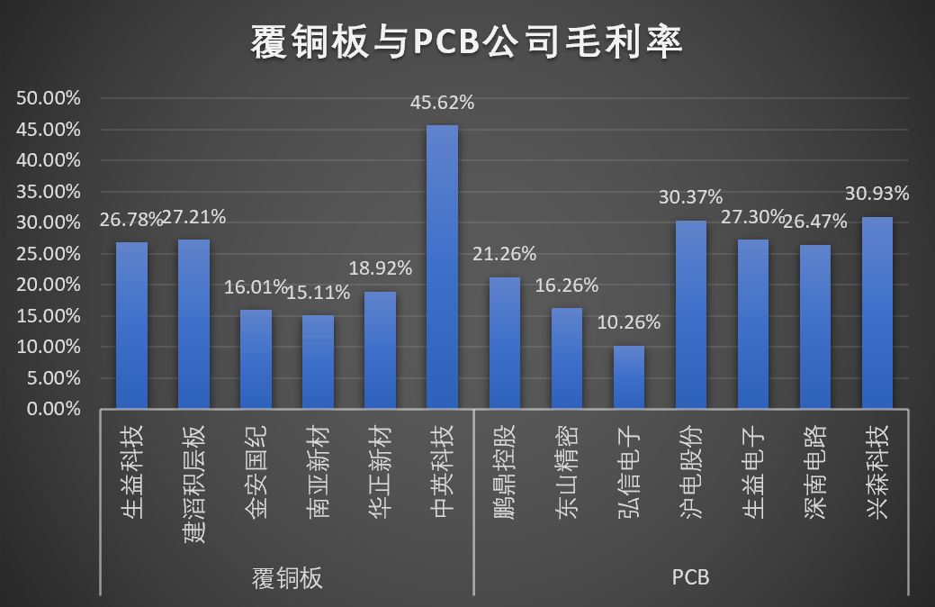 但相对而言的是,覆铜板企业凭借话语权的优势,更容易也更先在原料涨价的情况下提高自身利润。