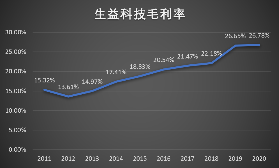 生益科技不仅业绩常年超越行业平均水平,毛利率更是连涨近十年,从2011年的15.32%上升到2020年的26.78%,18年行业寒冬洗牌过后,2019年它的利润、毛利率逆行业大增,市场对他的逻辑认可从周期股变为成长股。