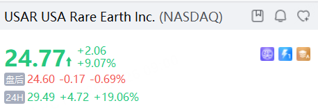 1月26日,美股夜盘时段,稀土概念股USA Rare Earth涨超19%,Critical Metals涨超9%,MP Materials涨超6%。据上周六消息,特朗普政府计划向USA Rare Earth注资16亿美元以换取该公司10%股权,这将是美国政府在稀土领域迄今最大规模的单笔投资。