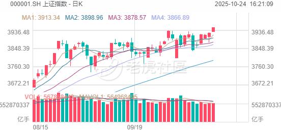 10月24日,A股三大指数今日集体走高,沪指续创10年新高;截至收盘,沪指涨0.71%报3950点,深证成指涨2.02%,创业板指涨3.57%,科创50指数涨4.35%。全市场成交额1.99万亿元,较前一交易日增量3309亿元,超3000股上涨。