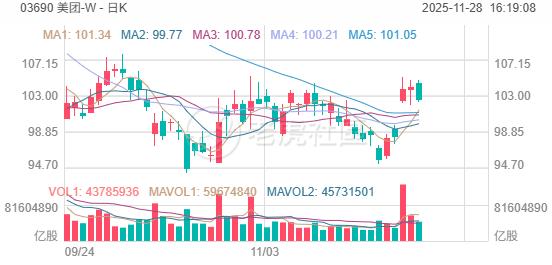 大型科技股涨跌不一,美团-W跌1.44%,快手-W、小米集团-W小幅走低,百度集团-SW、阿里巴巴-W、京东集团-SW小幅上涨;