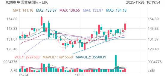 黄金股全天强势,珠峰黄金涨超12%,中国白银集团涨近6%,中国黄金国际涨超5%,灵宝黄金、潼关黄金涨超4%;