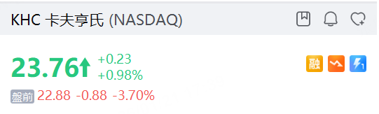 卡夫亨氏盘前跌逾3%,或遭巴郡出售27.5%持股;路透引述监管文件报道,巴郡哈撒韦(Berkshire Hathaway)可能会出售其所持美国食品公司卡夫亨氏(Kraft Heinz)27.5%的股份,从而退出这项已持续十多年、但并未给该公司带来理想回报的投资。