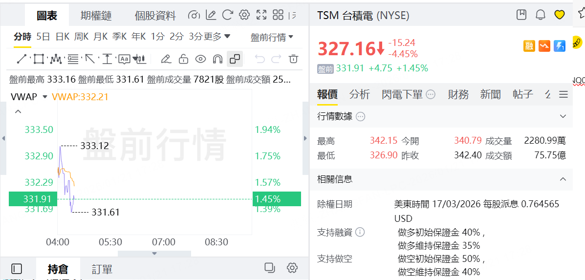 明星科技股盘前多数上涨。台积电升近2%,英伟达涨1%;谷歌微跌。