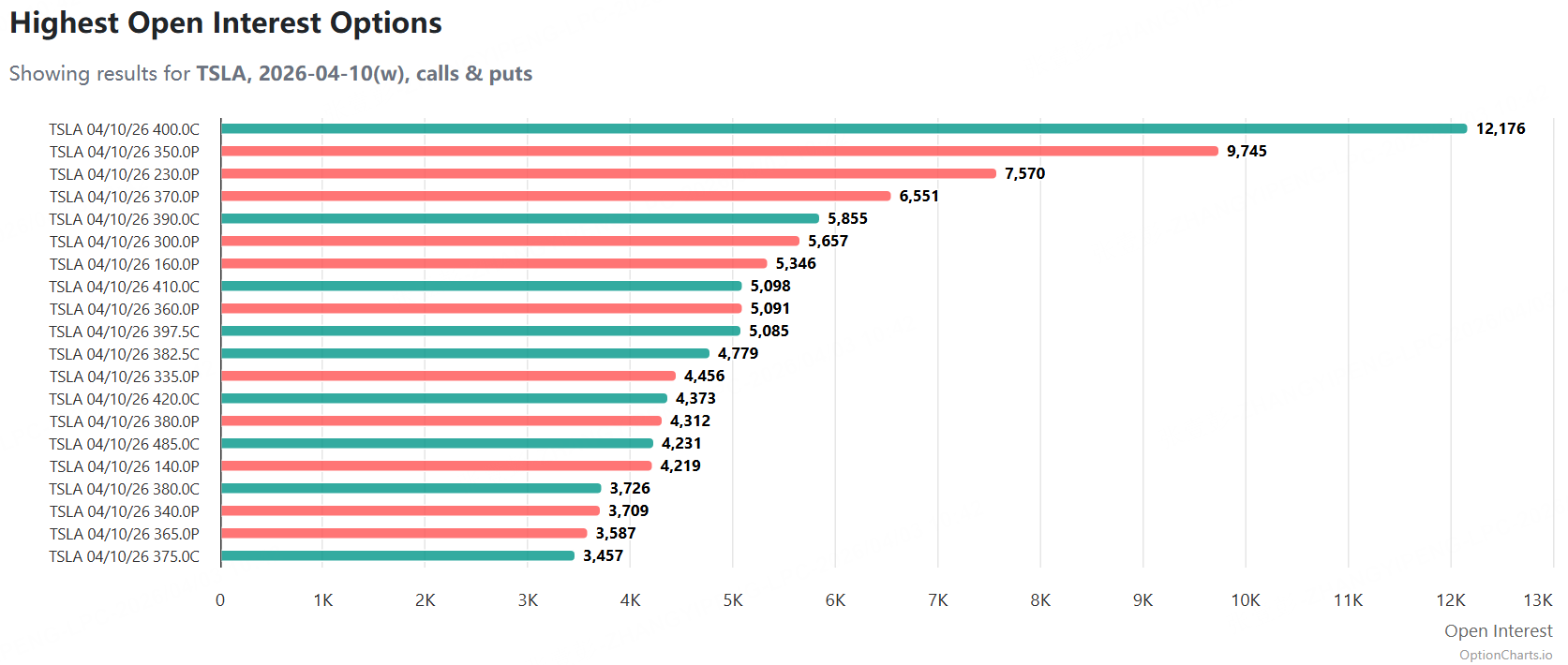 行权价400.0的看涨期权聚集了12,176张未平仓合约,是OI最集中的点位。