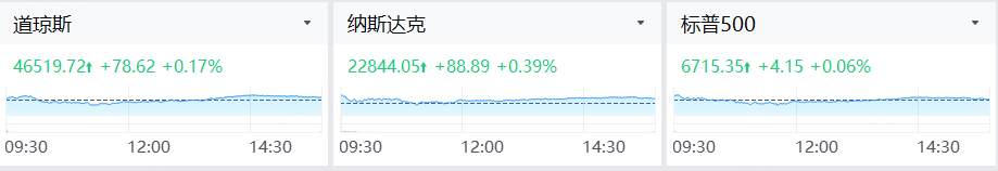 周四(10月2日),美股三大指数收涨,纳指、标普再创新高。截至收盘,道琼斯指数涨0.17%,报46519.72点;标普500指数涨0.06%,报6715.35点;纳斯达克综合指数涨0.39%,报22844.05点。