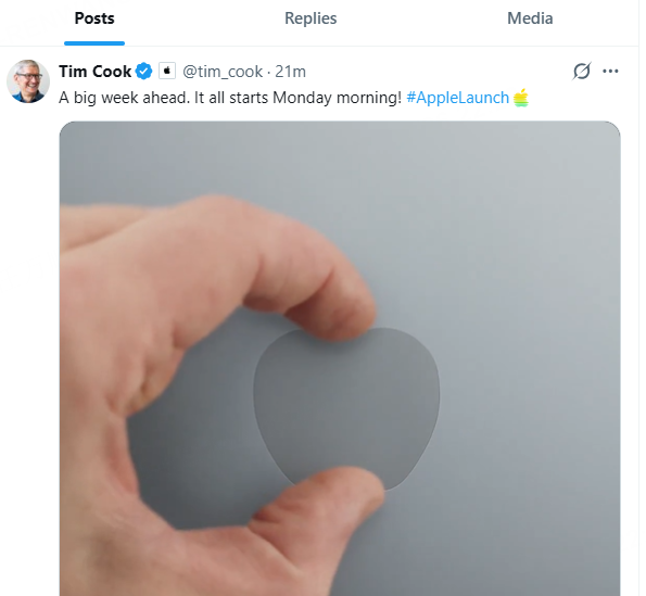 苹果公司首席执行官蒂姆·库克在X平台发贴称:“重磅的一周即将开启。一切都将从周一早晨开始。”