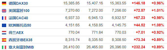 内房股强势走高,绿景中国地产涨近12%,新城发展涨9.68%,融创中国涨9.54%。