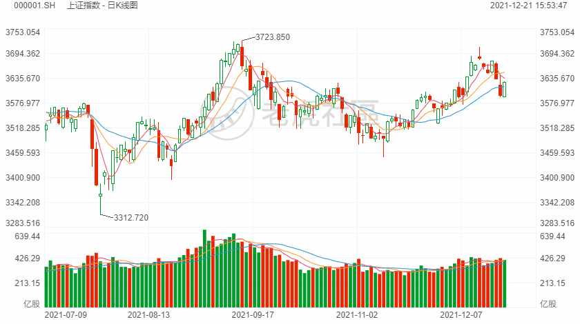 12月21日,两市主要指数上涨,沪指上午红盘震荡,午后持续拉升,全天收涨0.88%报3625点,深成指涨0.82%报14688点,创业板指涨0.53%报3350点。