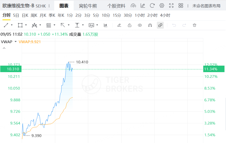 9月5日,港股医药股上涨,欧康维视生物-B涨超11%,宜明昂科-B涨超10%,康诺亚-B涨超8%,北海康成-B涨近8%。