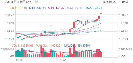 百度集团-SW 涨超4%,连涨四天,创近三年以来新高。消息面上,百度今日正式发布文心大模型5.0正式版,其基于原生全模态建模,拥有2.4万亿参数,支持文本、图像、音频、视频等多种信息理解输出。