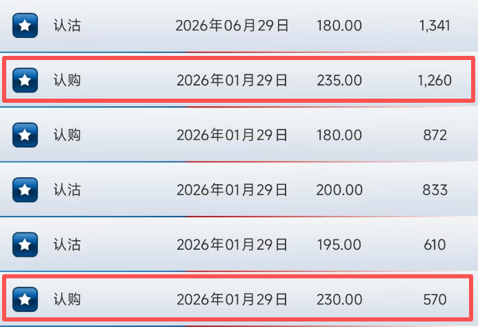 期权方面,泡泡玛特上午排名第二位的认购合约,到期日为1月29日,行权价高达235港元,较现价有约20%的涨幅空间。
