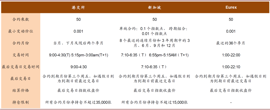 图表: MSCI China Free期货合约细则:月份与持仓限制为不同交易所的主要区别