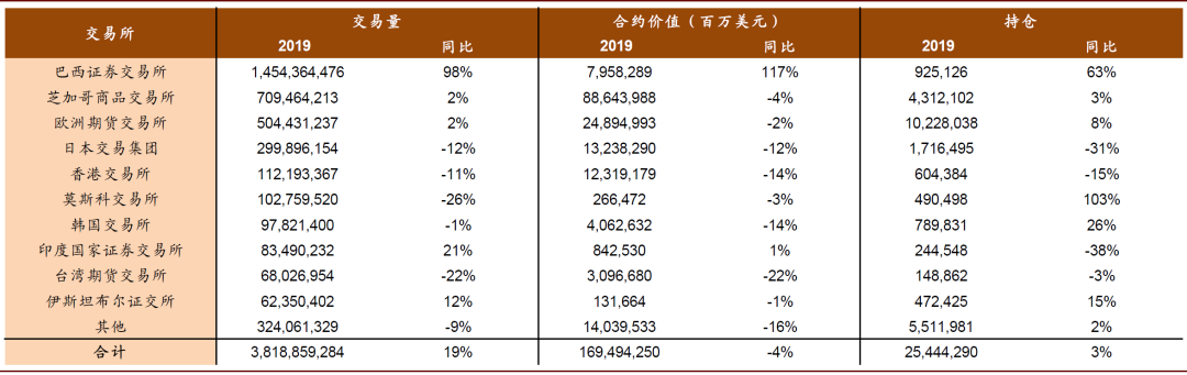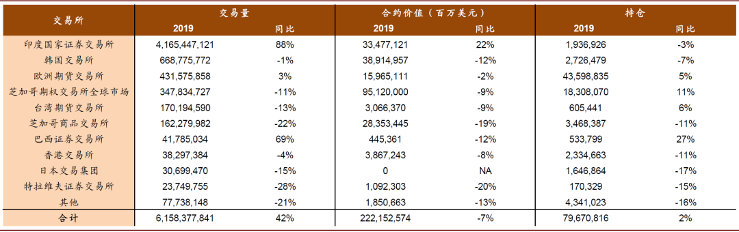 图表: 2019年全球股指期货交易量前十交易所