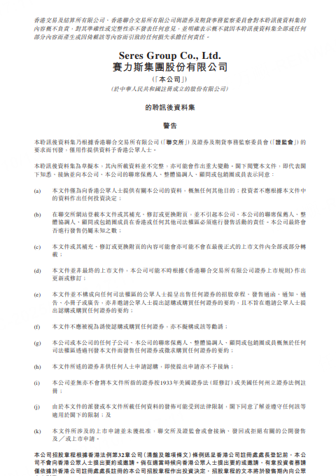 据港交所文件,赛力斯集团股份有限公司通过港交所上市聆讯,联席保荐人为中金公司、中国银河国际。