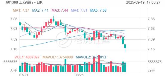 焦点股方面, 工商银行 盘中一度跌超2%,为近1年来首次跌破半年线(120日均线)。