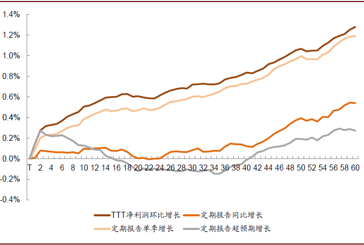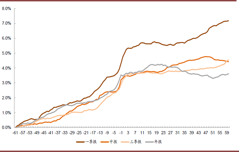 图表: 不同季报期发布业绩好消息累计超额收益